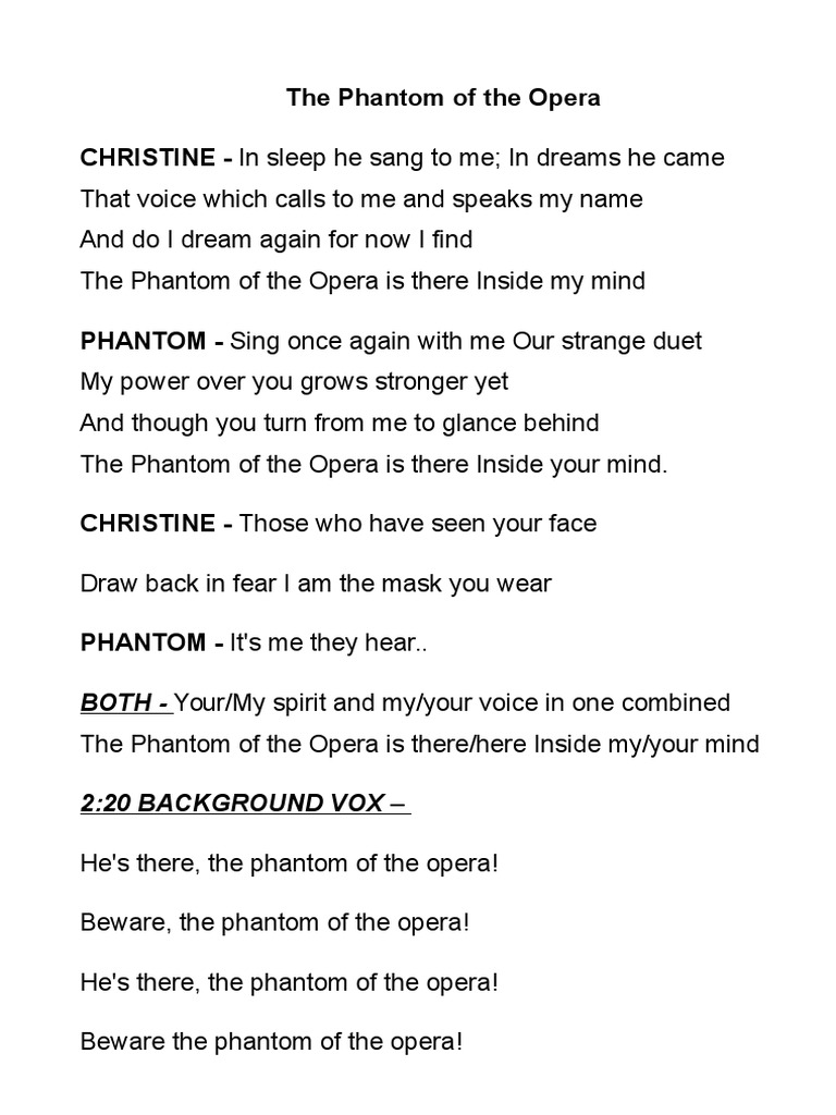 Em to glance behind em am the phantom of the opera is there